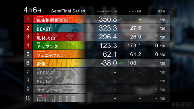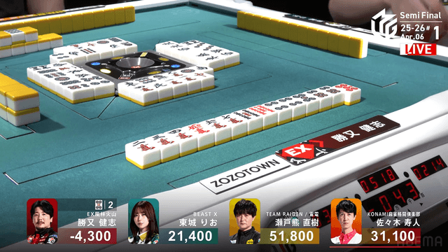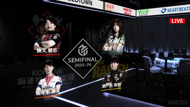 麻雀プロリーグ「ZOZOTOWN Mリーグ2025-26」セミファイナルシリーズ 1日目が4月6日(月)に開催された。