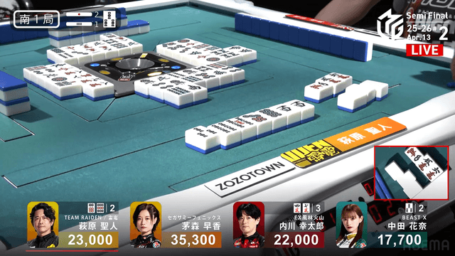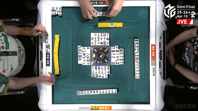待ちでリーチ。萩原が追いかけリーチをすると、内川も![]()