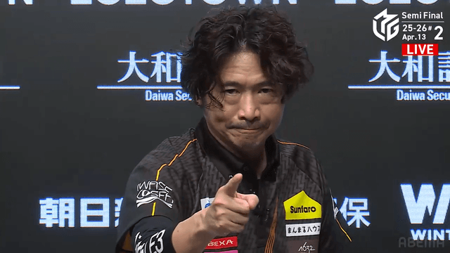 待ちの満貫ダマテンを入れる。さらに仕掛けた中田がペン