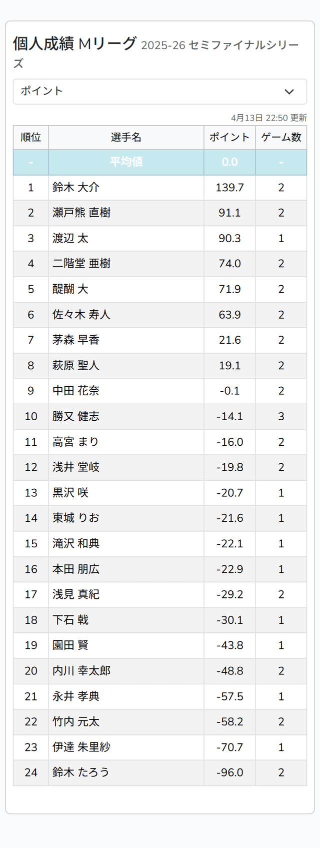 — Mリーグ/プロ麻雀リーグ (@m_league_) April 13, 2026
