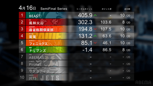 本日4月17日(金)19時から「ZOZOTOWN Mリーグ」セミファイナルシリーズ8日目が放送。第1試合出場選手が発表された。