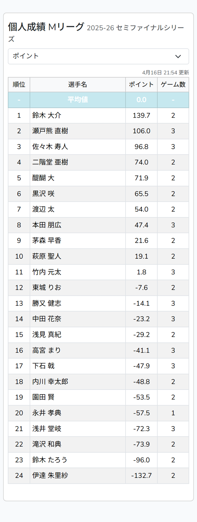 — Mリーグ/プロ麻雀リーグ (@m_league_) April 17, 2026