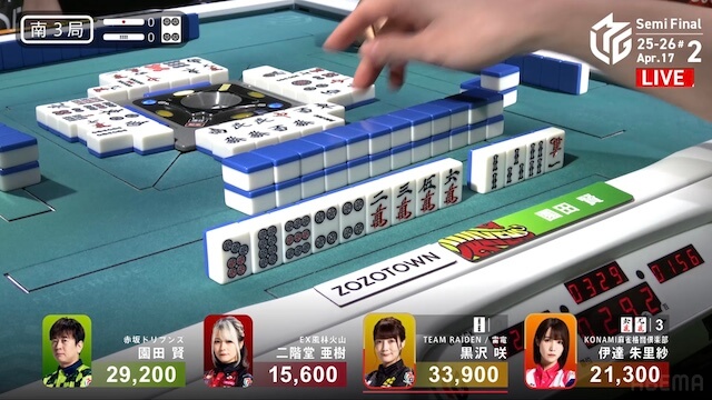 をつかみ、園田がロンの声をかけた。3900は4200のアガリ。