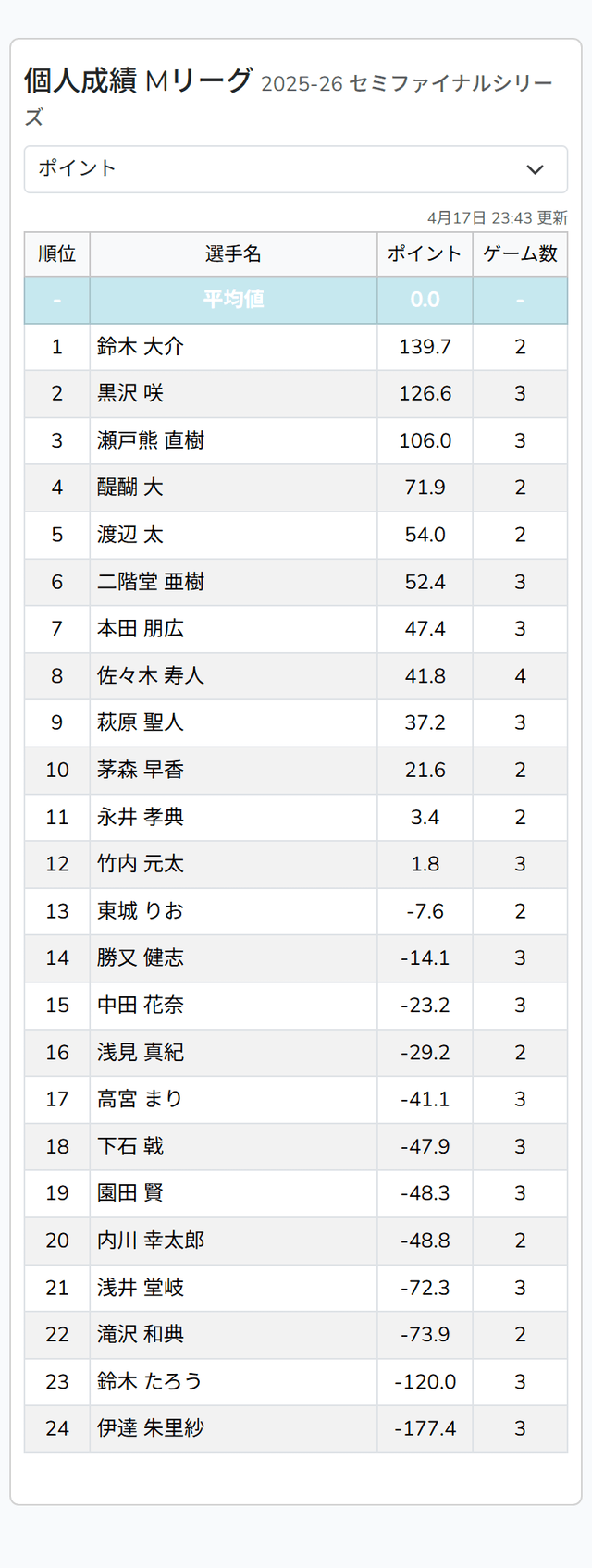 4月17日トータル結果