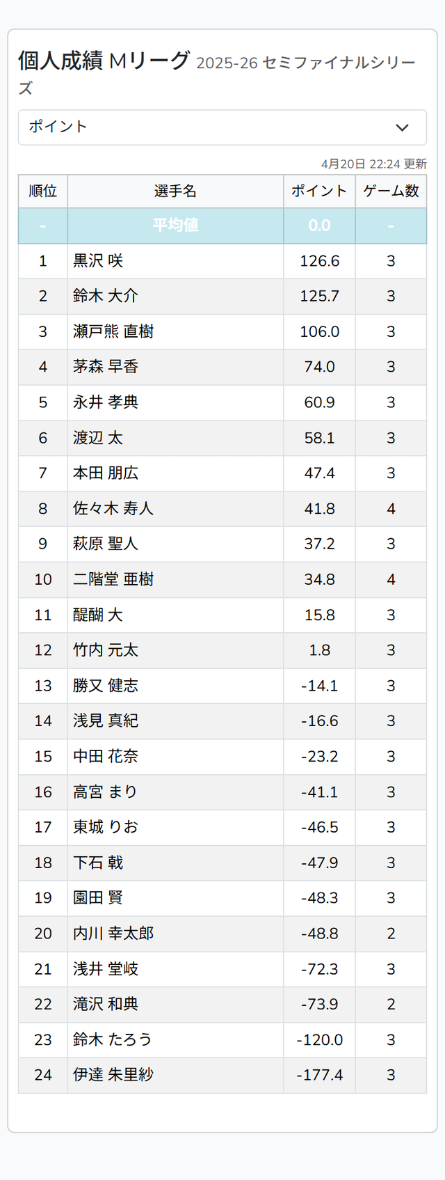 — Mリーグ/プロ麻雀リーグ (@m_league_) April 20, 2026