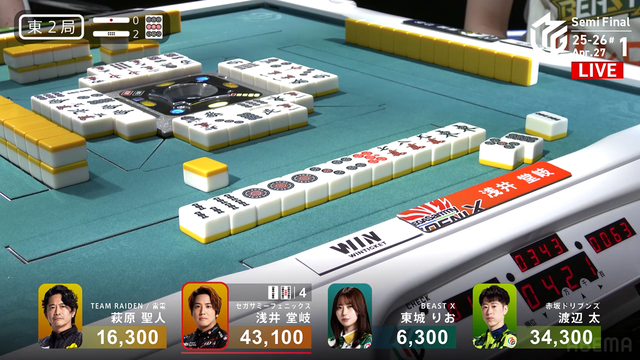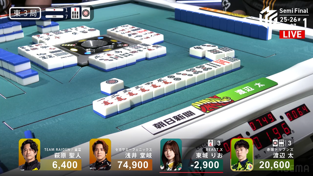 東2局3本場 #浅井堂岐 選手の親満貫のアガリ!