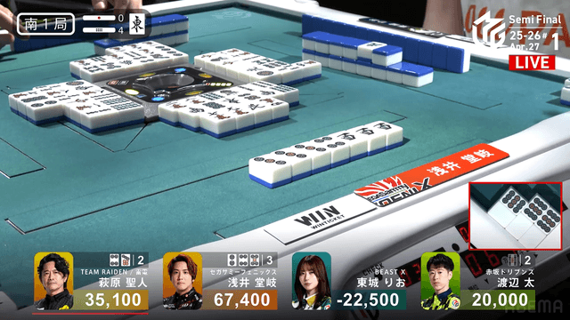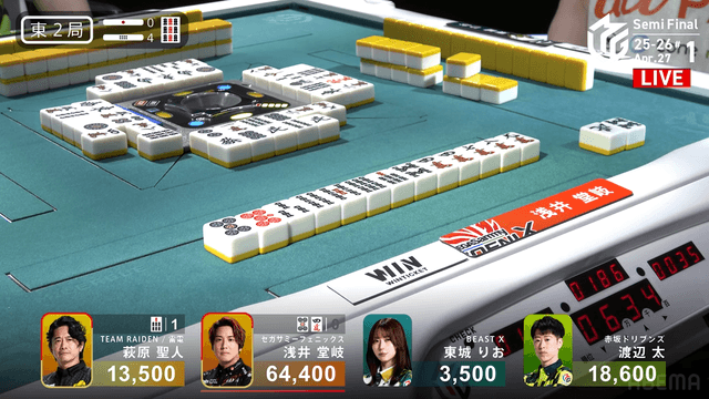 が放たれると、萩原のアガリで着順には変動なく終局。