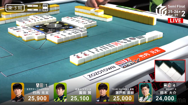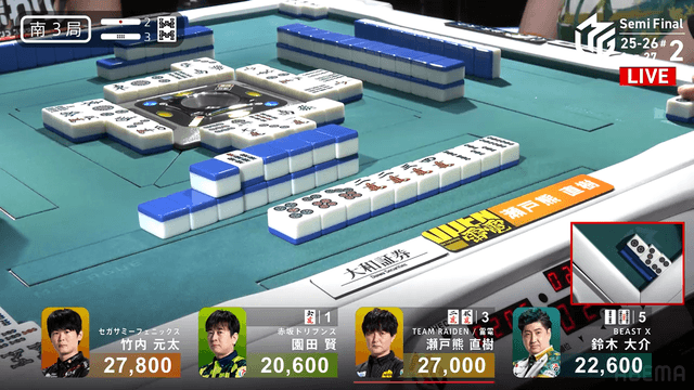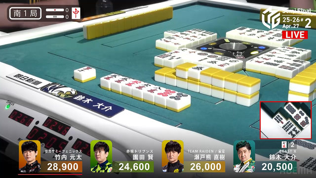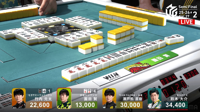 瀬戸熊選手が連荘を重ね抜け出す展開!