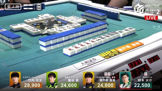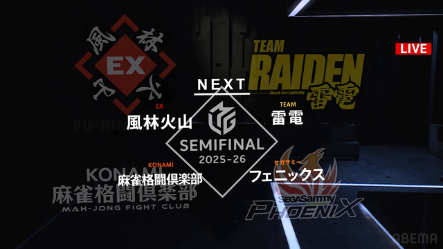 明日の対局で雷電とフェニックスはセミファイナルの戦いを終えることとなる。3位で終えればドリブンズと麻雀格闘倶楽部の両チームに捲られなければファイナル進出となる。