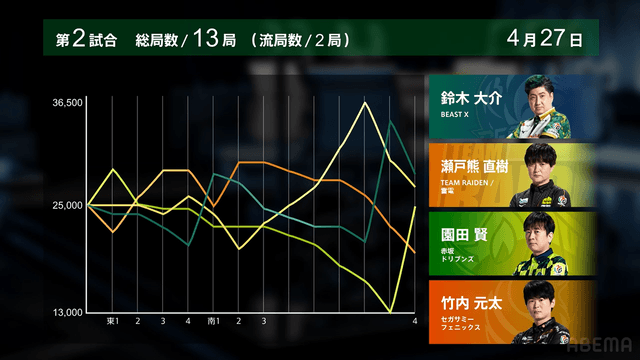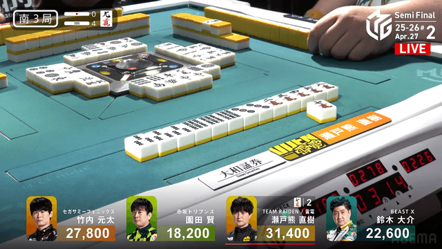 麻雀プロリーグ「ZOZOTOWN Mリーグ2025-26」セミファイナルシリーズ13日目が4月27日(月)に開催された。