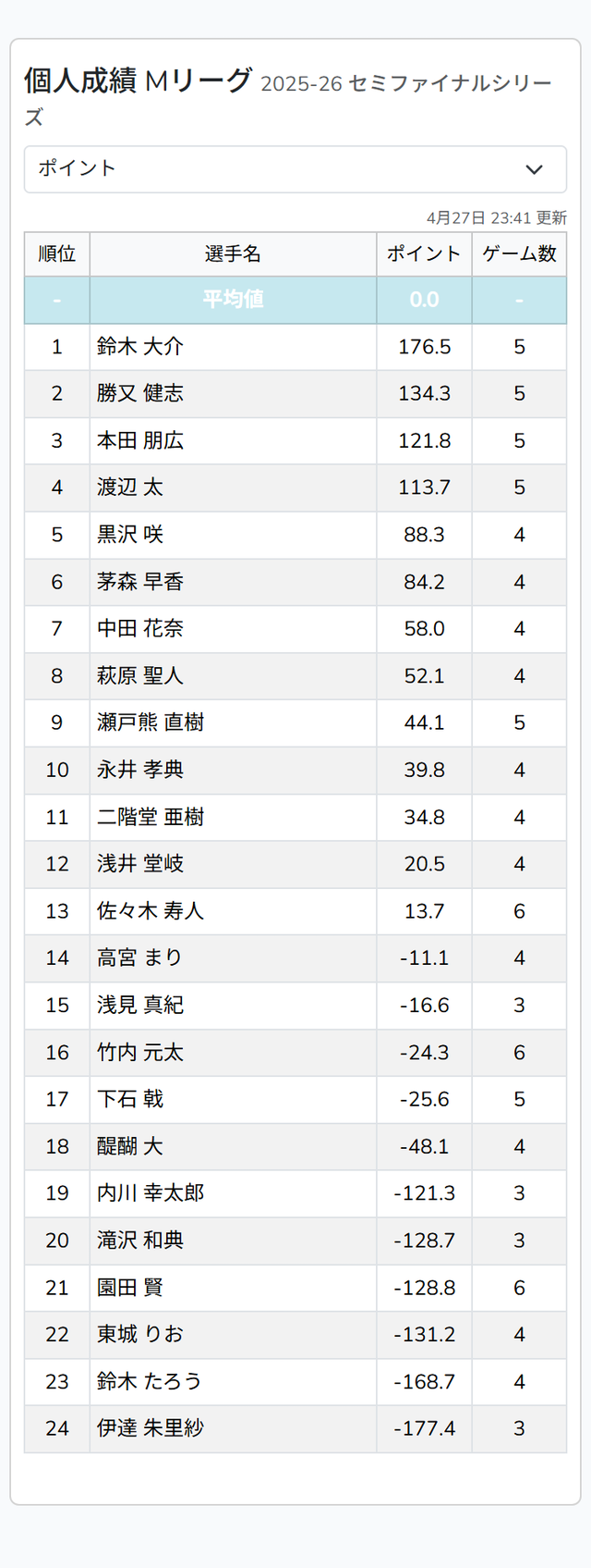 — Mリーグ/プロ麻雀リーグ (@m_league_) April 27, 2026
