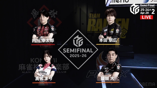 麻雀プロリーグ「ZOZOTOWN Mリーグ2025-26」セミファイナルシリーズ14日目が4月28日(火)に開催された。
