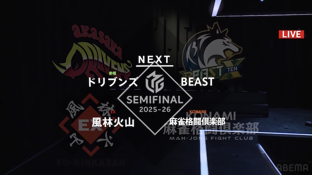 最終日は風林火山とBEASTの首位攻防戦となりつつ、麻雀格闘倶楽部はフェニックスとのポイント差を意識した息詰まる戦い、ドリブンズが大きな差を逆転するべく大きな連勝を目指した挑戦の1日となるだろう。