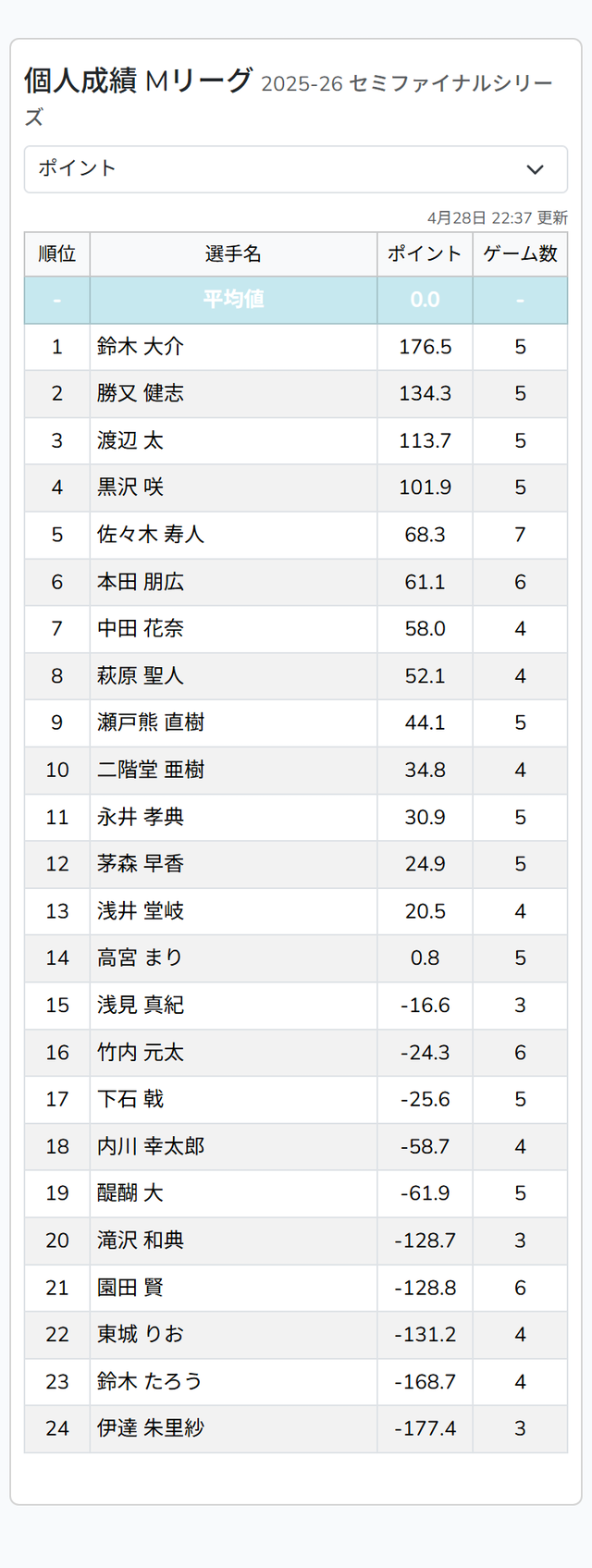▷ https://t.co/cQYGD7Jk3K#Mリーグ pic.twitter.com/WkWoKH8yZp