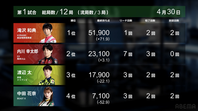 — Mリーグ/プロ麻雀リーグ (@m_league_) April 30, 2026