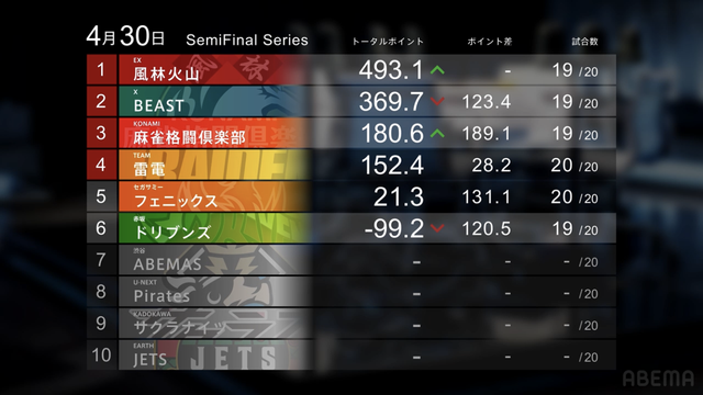 麻雀プロリーグ「ZOZOTOWN Mリーグ2025-26」セミファイナルシリーズ 15日目が4月30日(木)に開催された。